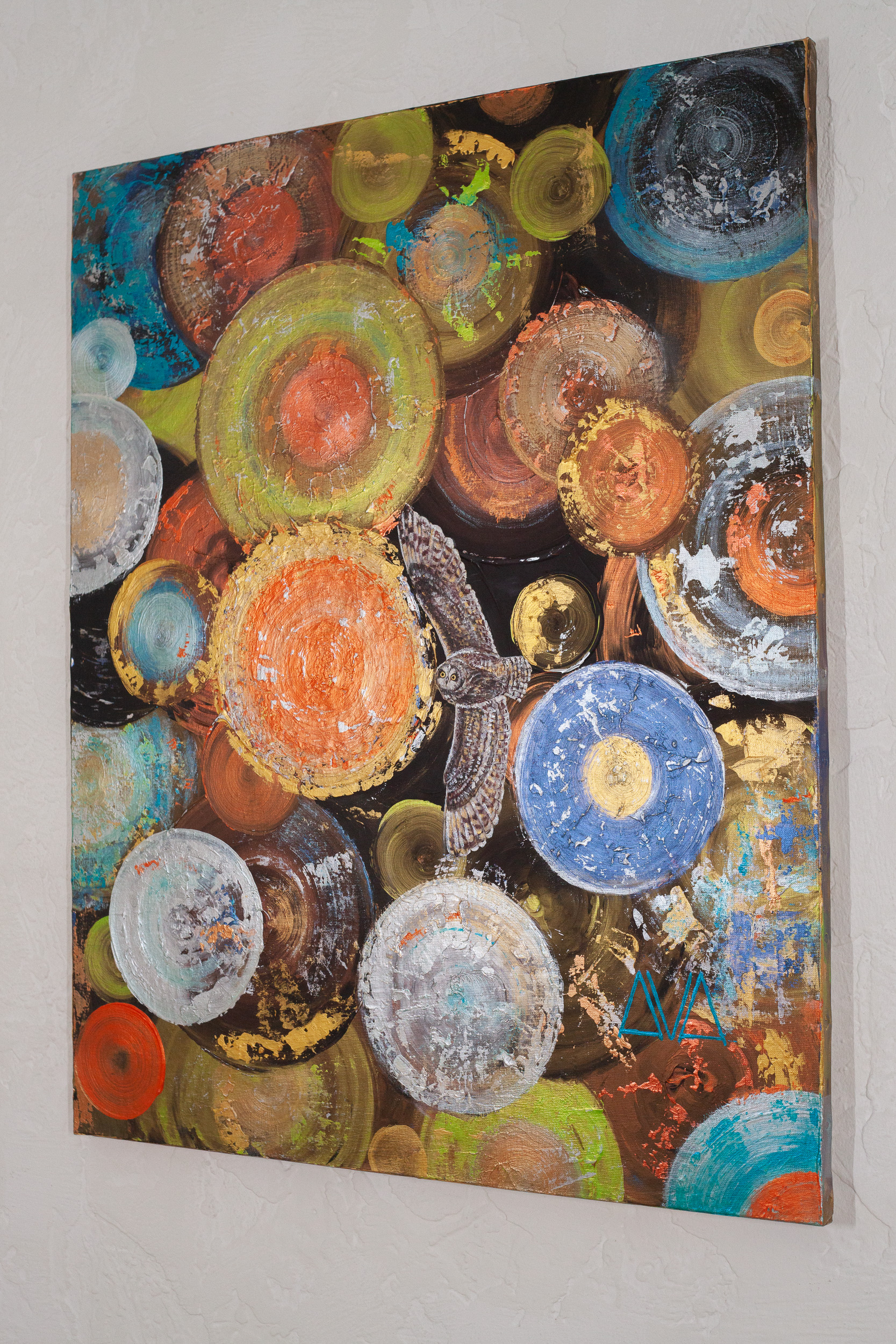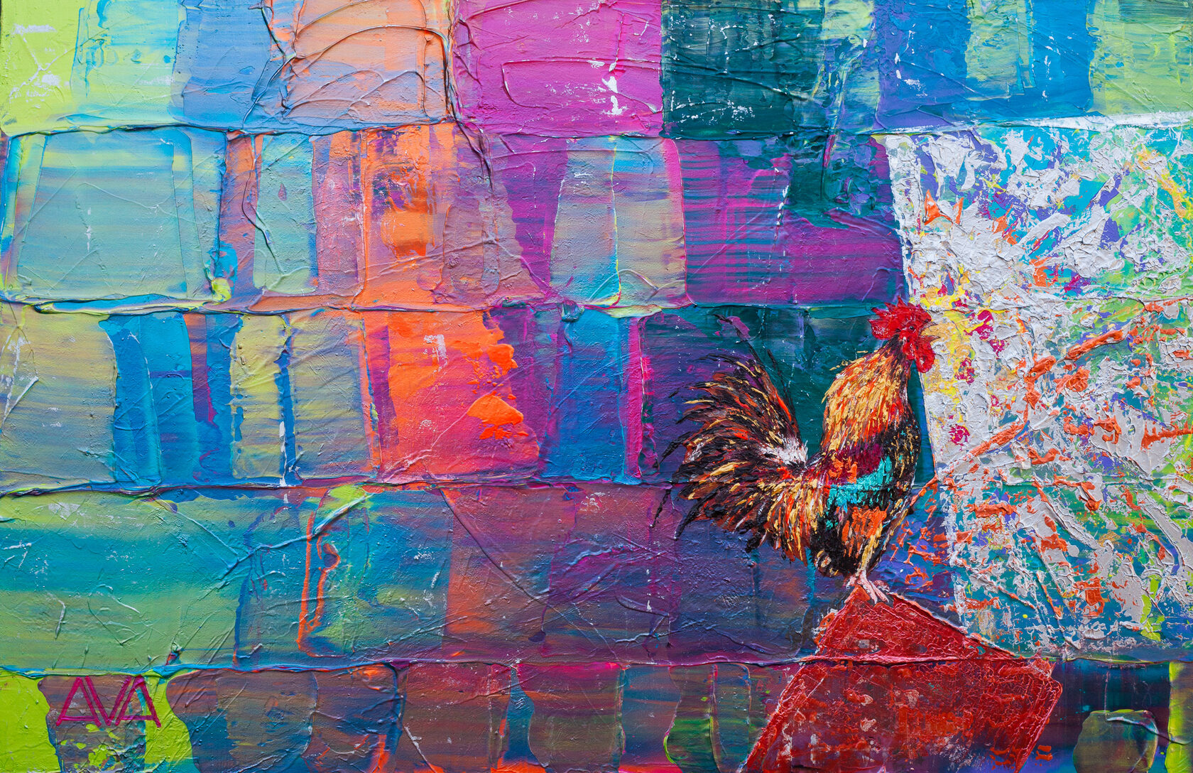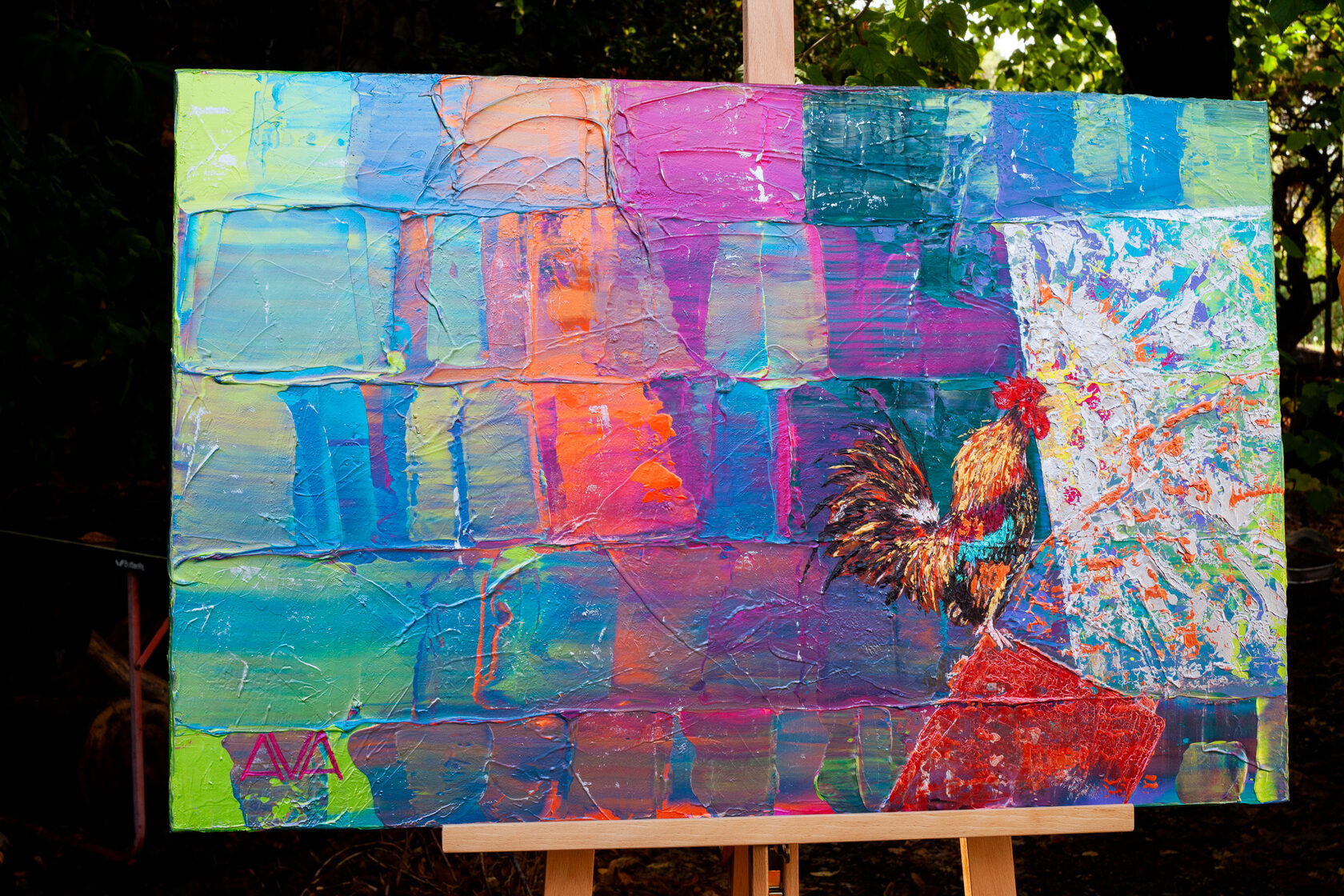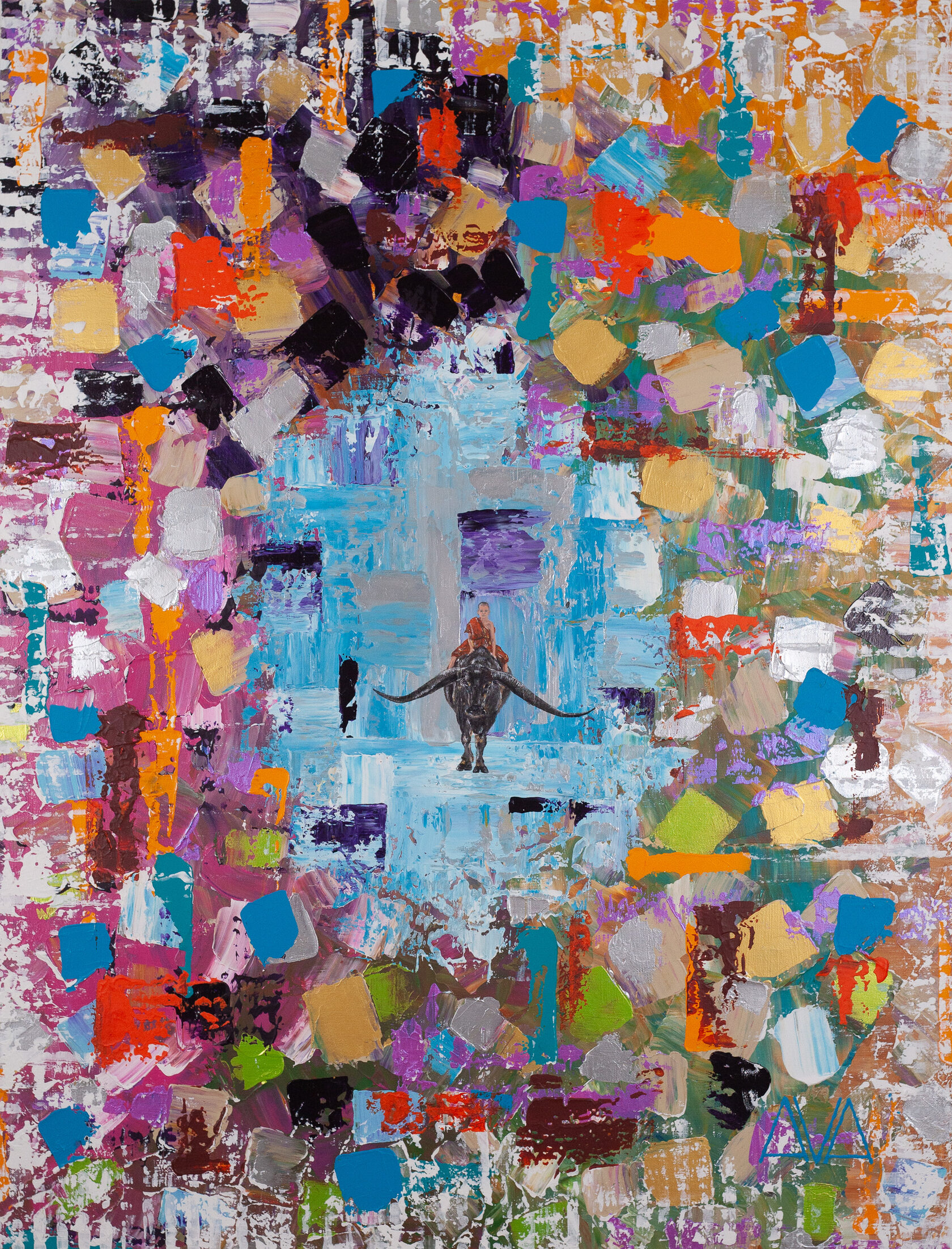 Я беру краски и наношу их слой за слоем, пока не увижу очертания какого-то персонажа или деталей, и тогда на этом фоне я начинаю прорисовывать их. Так рождаются мои картины.