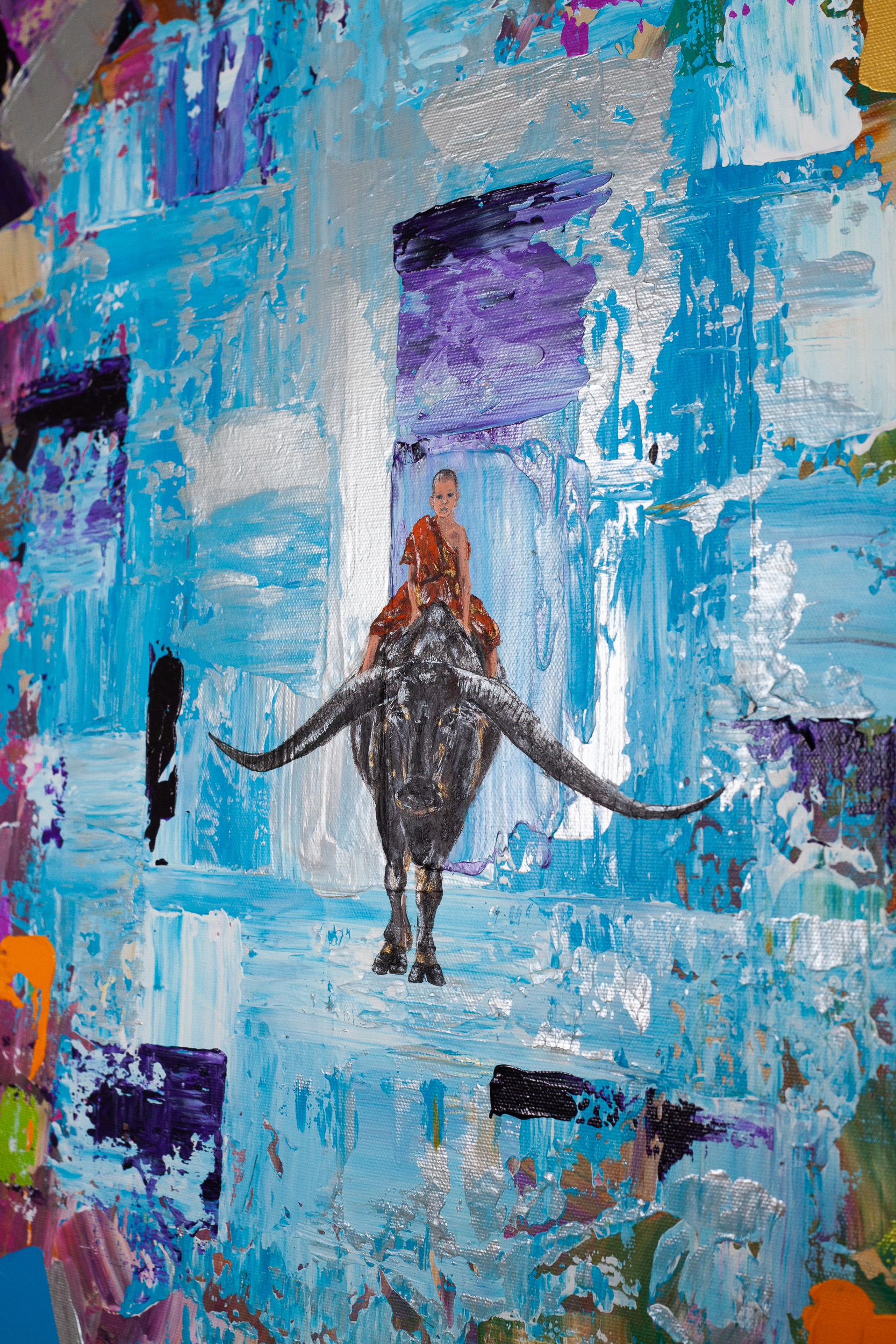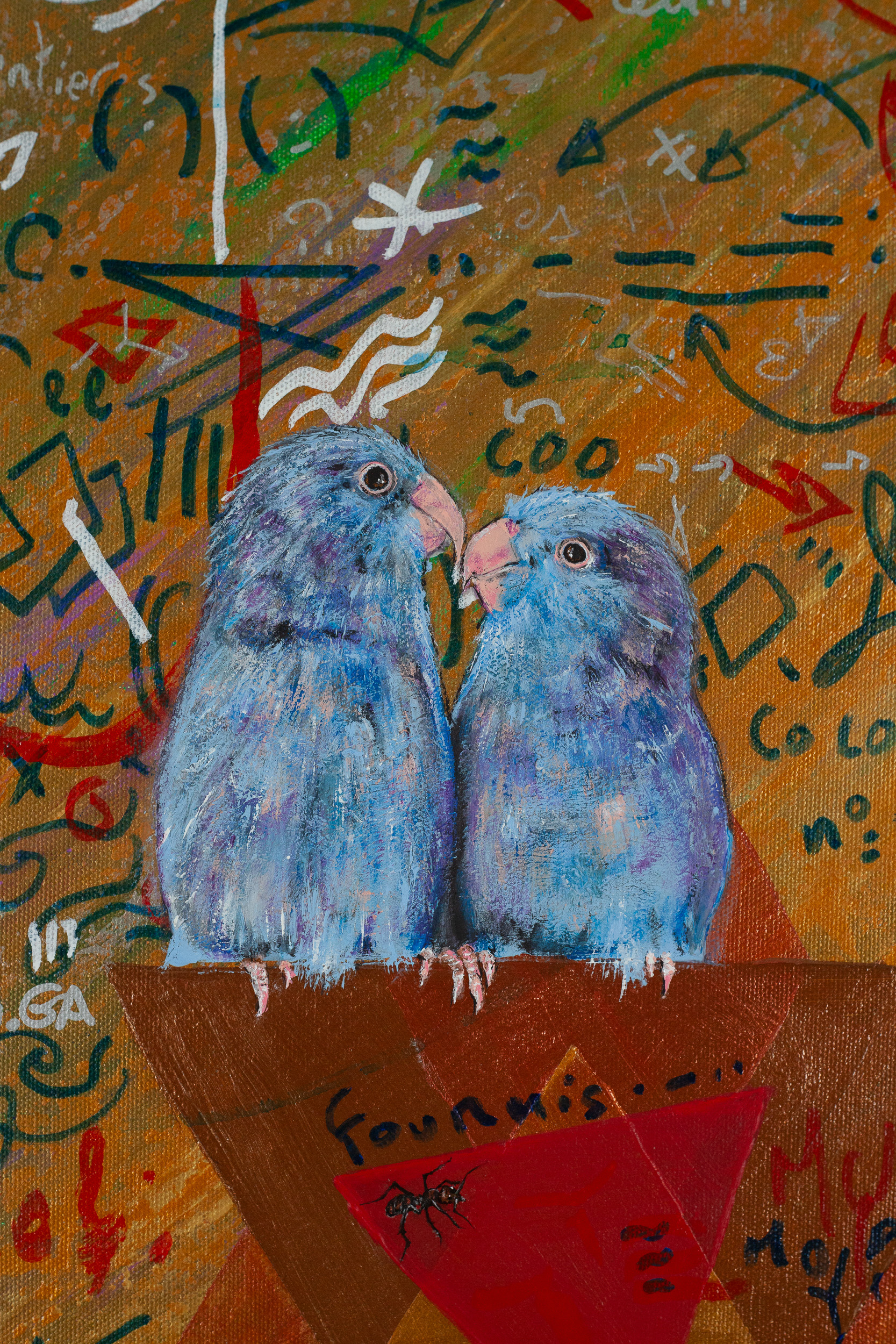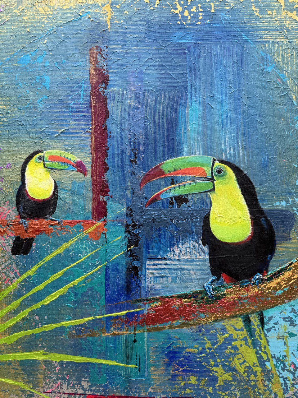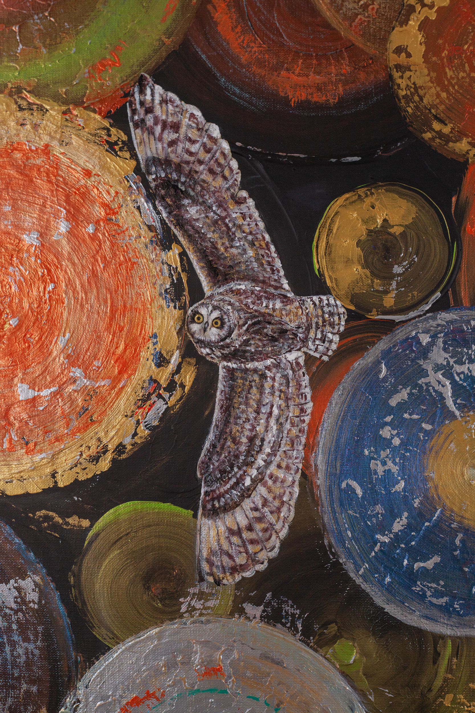 Я беру краски и наношу их слой за слоем, пока не увижу очертания какого-то персонажа или деталей, и тогда на этом фоне я начинаю прорисовывать их. Так рождаются мои картины.